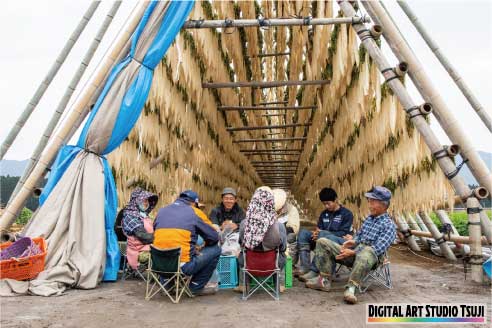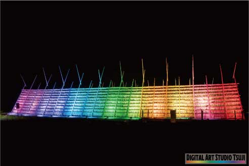 冬には巨大な大根やぐらが各所で建てられ、干し大根が並ぶ景色は圧巻です。PRイベントとして一部の大根やぐらではライトアップが行われ、たくさんの大根やぐらとあわせて冬の風物詩となっています。