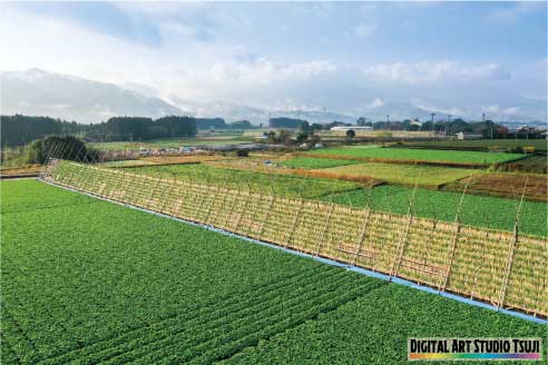 九州の宮崎県宮崎市に広がる宮崎平野の南西部に位置し、日本有数の日照時間に恵まれ、火山灰土壌が広がる畑台地帯です。露地畑作が盛んで、夏は甘藷や葉タバコ、冬は大根など1年を通して栽培を行っています。